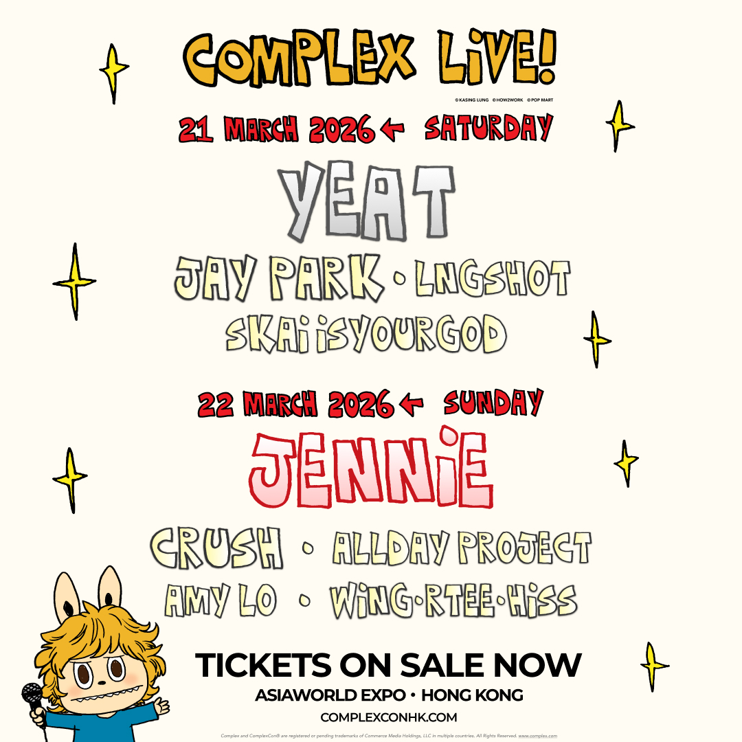 Following his massively viral headline performance at ComplexCon Las Vegas in October 2025, the new-generation trailblazer Yeat has officially announced he will headline ComplexCon Hong Kong on Mar 21! Marking his first-ever official performance in Asia. With his distinctive music production and aesthetic, he continues to define and reshape the cutting edge of contemporary Trap Rage. From "AftërLyfe" to "2093" and "DANGEROUS SUMMER," Yeat constantly pushes creative boundaries, showcasing his versatile and hybrid approach to rap artistry.
